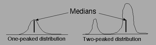 More generally, whenever there is a 2-peaked score-distribution for some candidate, median is going to pay essentially no attention to the sizes of the two peaks (also will ignore the location of at least one of them) and hence will often output a pretty crazy judgment.