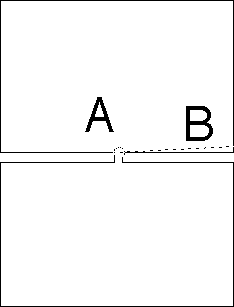 The country (shaped like two rectangles of slightly-unequal size joined by a short thin neck) can be divided in half by either (A) a short circular arc, or (B) a much longer line segment.