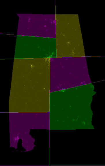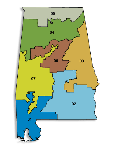 Alabama 2007: official vs splitlined districtings.