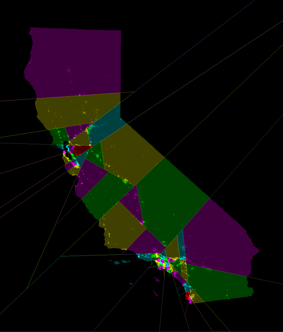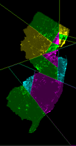 its splitline-method districting (different colors for different districts),