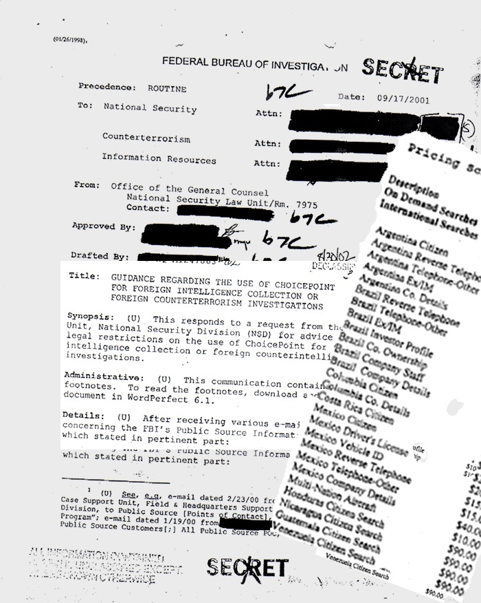 Special thanks to the Electronic Privacy Information Center, Washington DC, which received and passed on to our team the FBI ChoicePoint files and other foreign intelligence documentation.