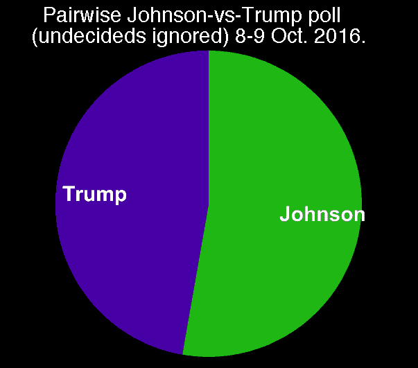 Johnson's F/U ratio 0.524 (claimed by HuffPost) is confirmed by a poll we spoke previously about, which was not part of the HuffPost aggregation. It was conducted by the Johnson/Weld campaign on 8-9 October, and found ratio 0.507.