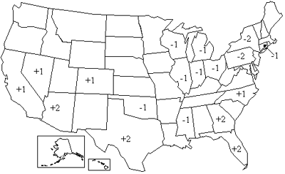 Every ten years, a new census leads to a constitutionally mandated reapportionment of the House of Representatives. Inevitably, this process has major political consequences, and the 2000 census is no exception. The new apportionment will cost the Northeastern states ten seats and give a substantial boost to the political fortunes of the South and the Southwest, as shown in figure 1.